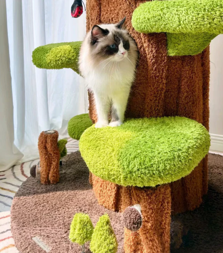 Die Sprungplattformen und das Schlafhäuschen sind weich gepolstert und bieten ein wolkenähnliches Liegegefühl – perfekt zum Ausruhen oder Beobachten.