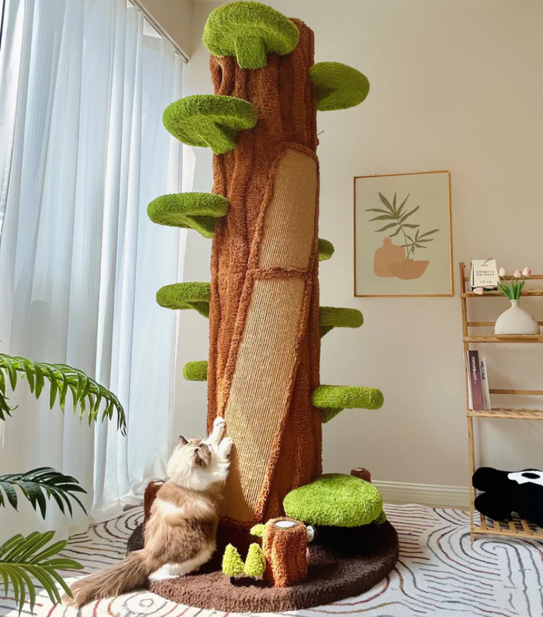 Ich liebe das Design dieses Kratzbaums – er ist modern, geräumig und sieht in meinem Zuhause wunderschön aus. Die Farbe ist elegant und er ist groß genug, damit meine Katze bequem entspannen kann. Der Aufbau war einfach und unkompliziert – ein großes Plus!