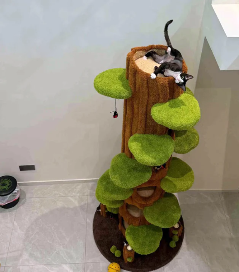 Die Sprungplattformen und das Schlafhäuschen sind weich gepolstert und bieten ein wolkenähnliches Liegegefühl – perfekt zum Ausruhen oder Beobachten.